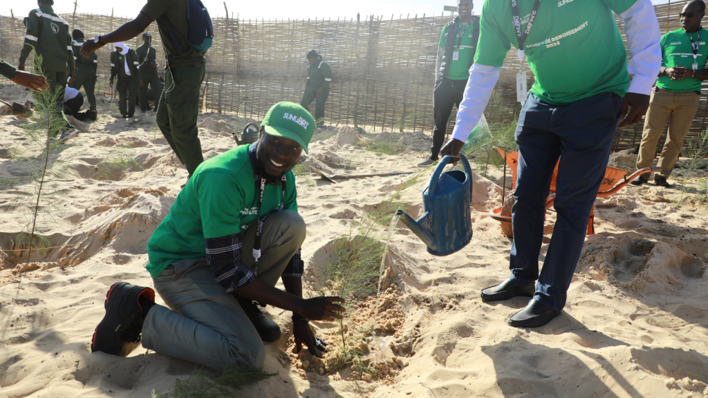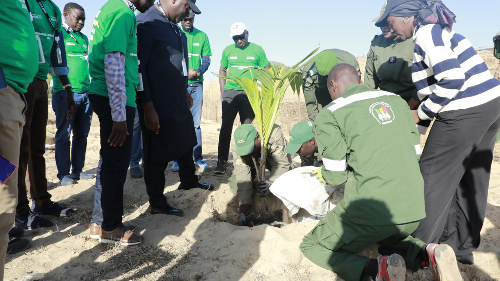 En décembre 2025, Dakar Mobilité a marqué son engagement pour la préservation de la biodiversité en organisant, en partenariat avec le secteur des Eaux et Forêts de Guédiawaye, une opération de reboisement. Celle-ci a permis reboiser un îlot vert de 800 m² sur le littoral de Gadaye, avec la plantation de plus de 1000 jeunes plants de filaos et de cocotiers.